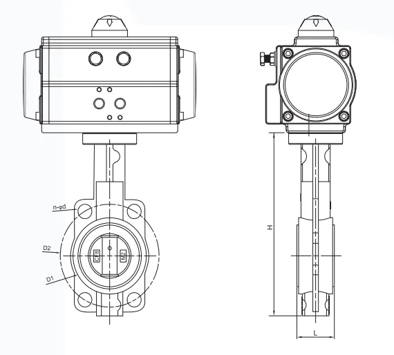 home Home / Product / Pneumatic Actuated Valve / DELCO DK67-DC Pneumatic Cast Iron Butterfly Valve - PTFE Lined / Rubber Seat, Wafer Type