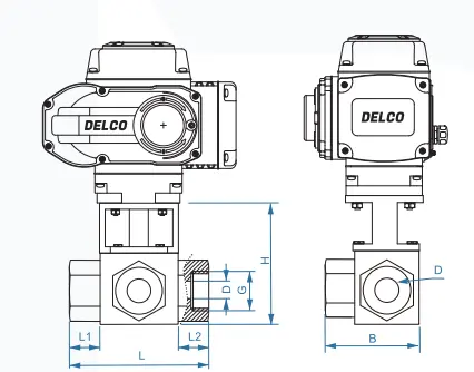 DELCO IP67-DK55-HGT Electric High Pressure 3-Way Ball Valve - Forged Steel