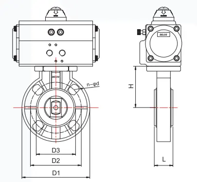 High Protection and Flexible Installation: The pneumatic actuator features an IP65 protection level for durability in harsh industrial settings. The valve utilizes a compact wafer-style connection, compatible with both Clamp or Flange (DIN/ANSI standard) types.