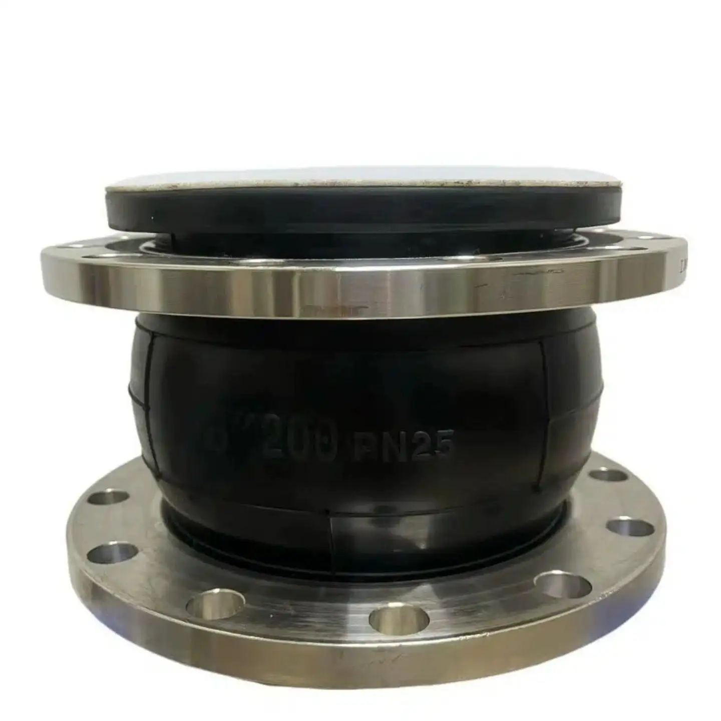 The rubber body is constructed with multiple layers of high-strength nylon tire cord fabric (not just cotton), ensuring a high bursting pressure (Safety Factor 3:1) and stability under working pressures of PN10, PN16, or PN25.